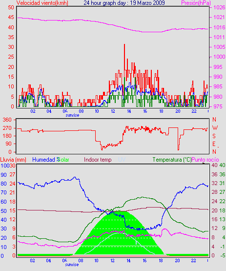 Maxima viento = 16.6 km/h en dia 18 a la hora 16:28