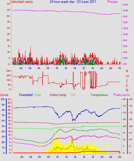 Maxima viento = 35.2 kmh from 248°(WSW) en dia 18 a la hora 16:59