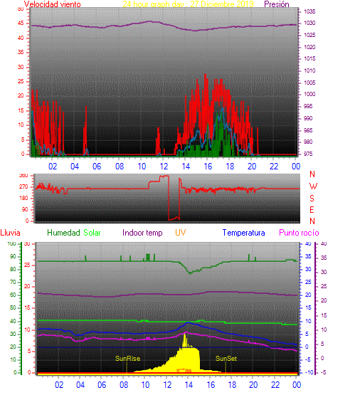 Maxima viento = 40.7 kmh from 233°( SW) en dia 13 a la hora 13:00