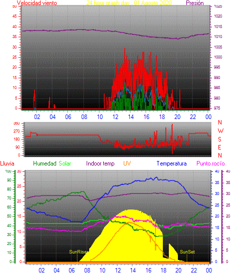 Maxima viento = 31.5 kmh from 312°( NW) en dia 09 a la hora 18:42