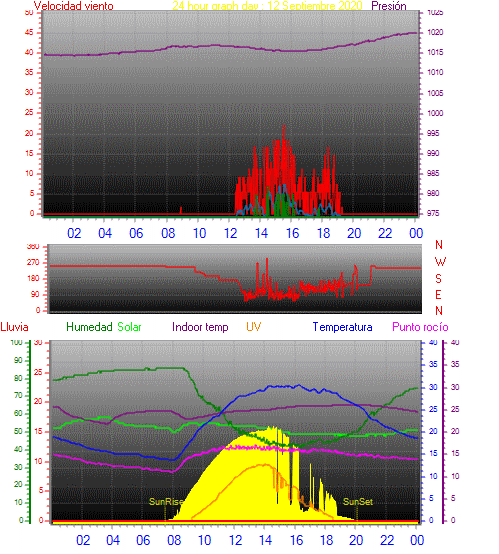 Maxima viento = 37.0 kmh from 254°(WSW) en dia 25 a la hora 15:34