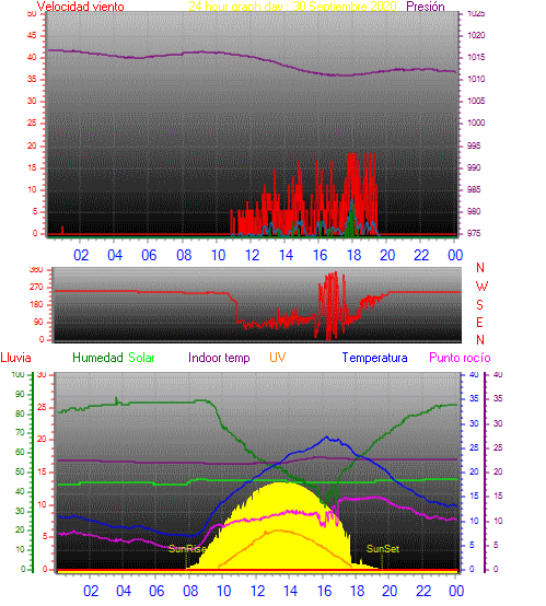 Maxima ráfaga viento= 18.5 km/h de 212°(SSW) en dia 30 a la hora 19:17