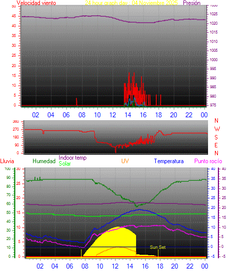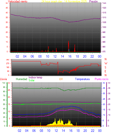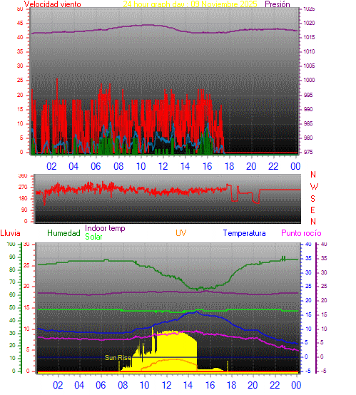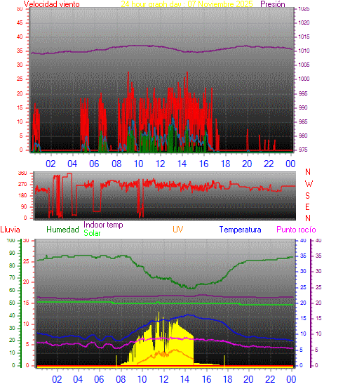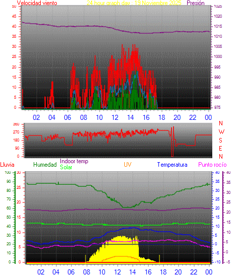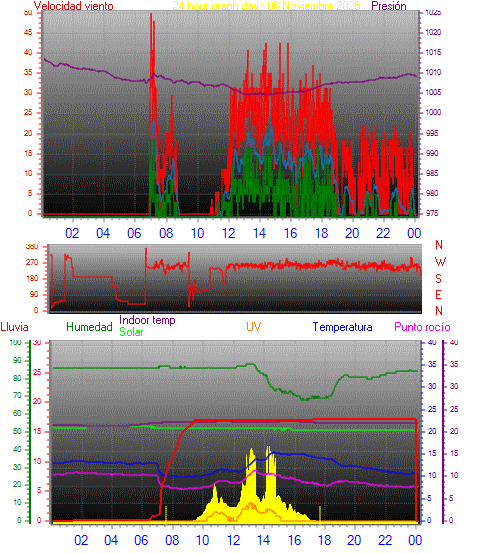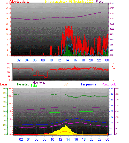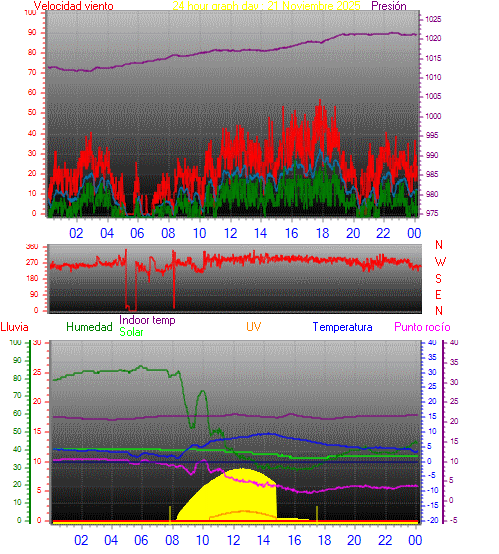 Maxima viento = 40.7 kmh from 313°( NW) en dia 21 a la hora 17:49