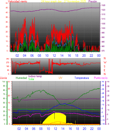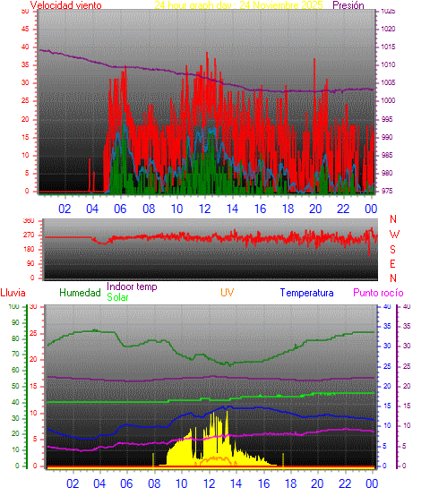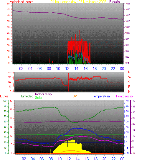 Maxima ráfaga viento= 27.8 km/h de 262°( W ) en dia 29 a la hora 14:35