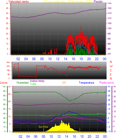 Maxima viento = 16.7 km/h en dia 30 a la hora 18:00
